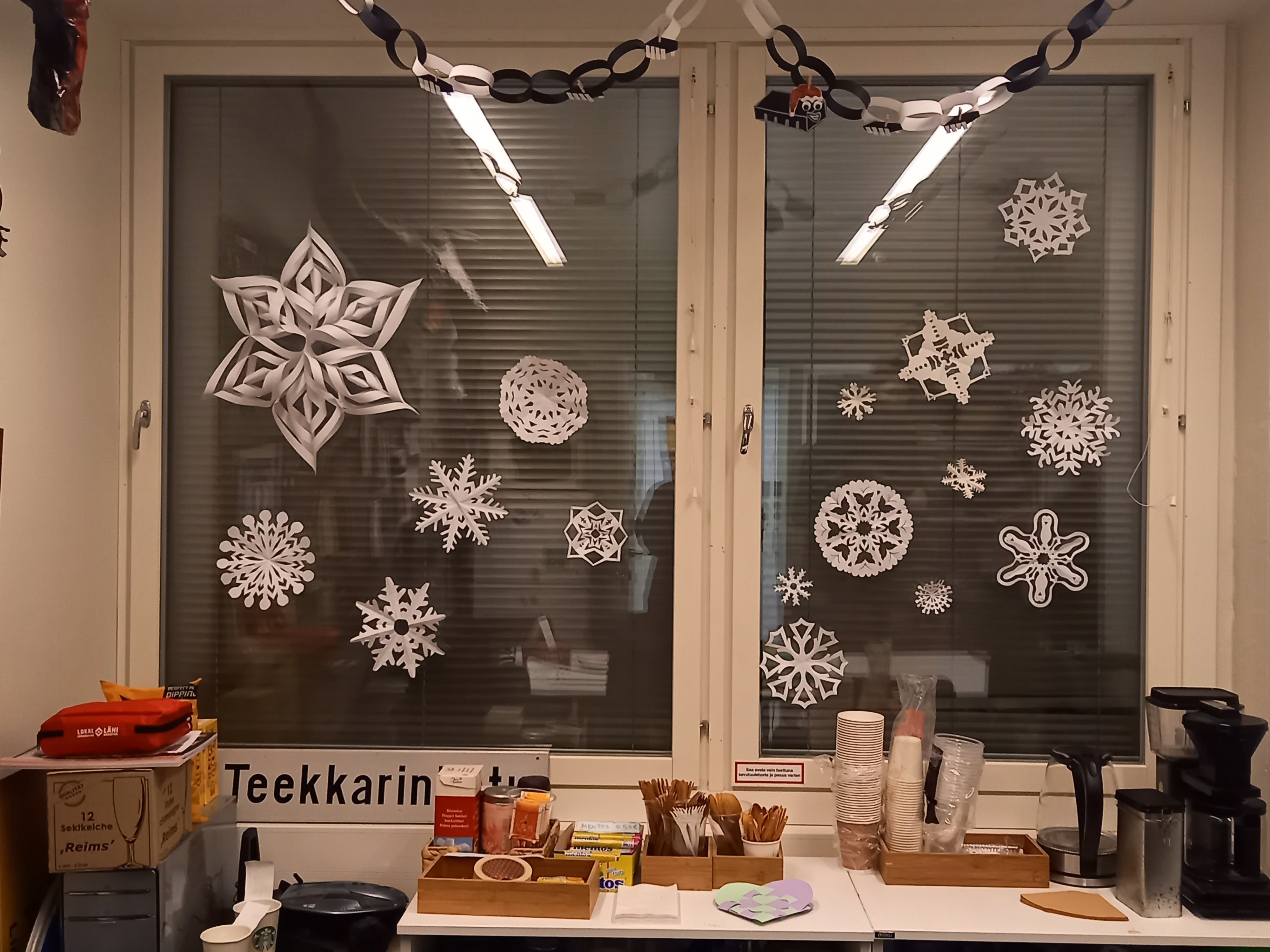 Jul är på kommande och jul var temat för tisdagens träff. Vi hade en mysig brasa i kansli med julmusik och gjorde julpyssel och drack glögg. Till följd av detta är kansliet nu väldigt fint julpyntat (bildbevis):